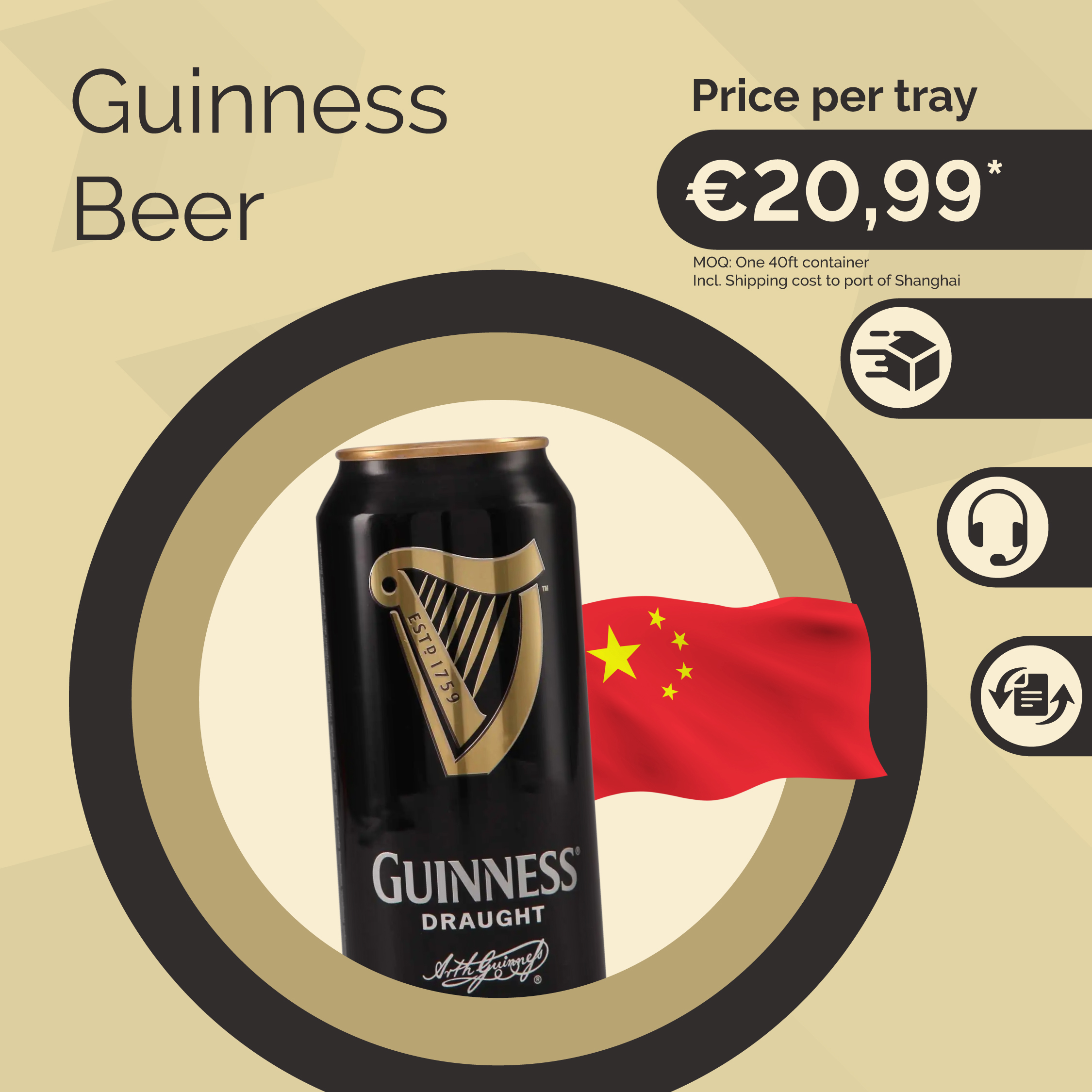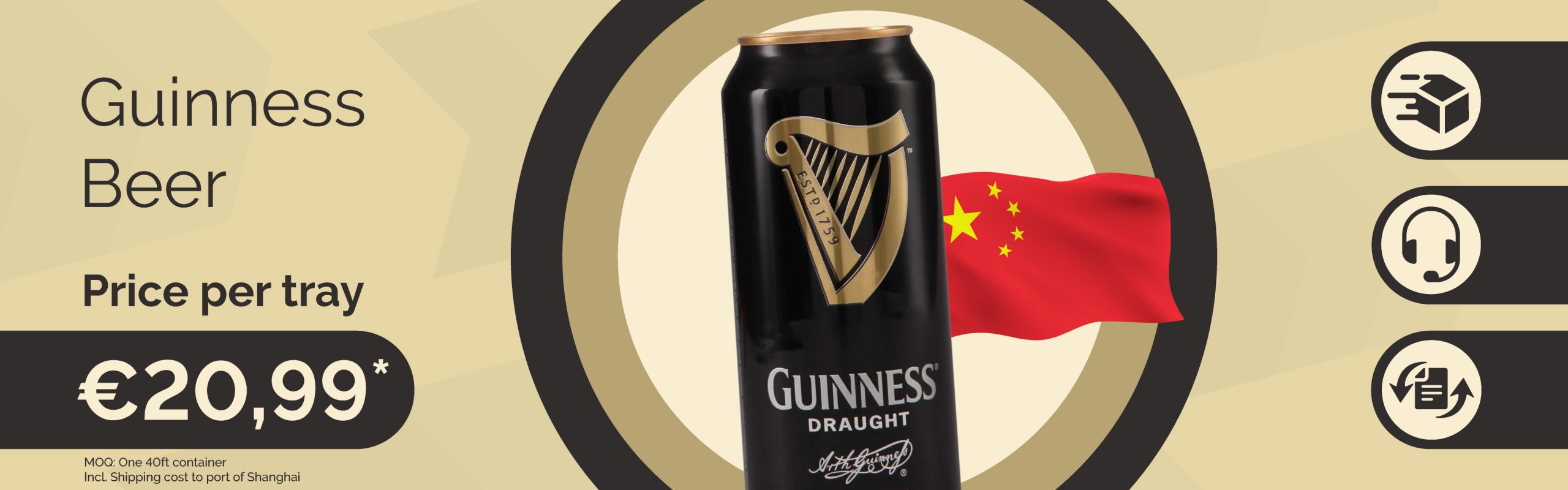Are you looking for a reliable wholesale partner to stock up on Guinness beer products? We are a German-based wholesaler offering European produces Guinness beer in large quantities. Prices include shipping to the port of Shanghai in 20-ft or 40-ft containers.